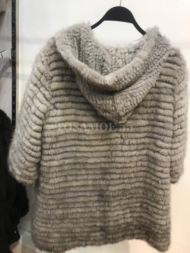 Серая жилетка из вязаной норки с капюшоном
