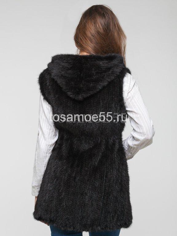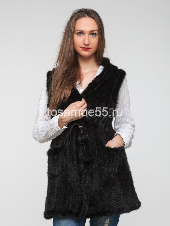 Жилетка из вязаной норки черно-белого цвета рукав 3/4